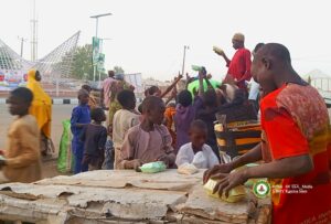 Dr. Khadimatul Sayyada Hajiya Hauwa Radda Mu’assasatul Khairiyya Tayi Abunda tasaba aduk shekara Rabon Abincin Sahur da Kunu da kosai da ruwa na Buda-baki kenan ga Al’umma mazauna Hajj. Camp Roundabout Katsina.
